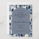 A blue and beige watercolor texture abstract pattern birthday invitation for him. All fields are editable. This is for a 50th birthday, but can be used for any year, just edit the invitation to suit your needs.