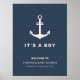 It's a boy!, Nautical baby shower theme, celebrate upcoming baby shower with our beige rustic minimalist nautical anchor in navy blue colour. You can personalise your own text and colour via "personalise this design".