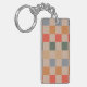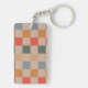 Blue Beige Orange Brown Chequered Gingham Pattern Key Ring