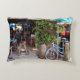 Casual, relaxed, riding around on bicycles, these are some of the things that make up the comfortable lifestyle pictured in the original photograph by ZoeSPEAK on this Accent Pillow. An aqua blue bicycle leans against a post in front of an open air bar in Key West, Florida. There is a leafy green bush in a tub, under an awning which matches the colour of the bike. The dark interior of the place is filled with wooden bar stools, and aqua and cobalt blue umbrellas over the tables. An aqua blue bar in front completes the colourful photo.