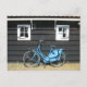 Blue Bicycle Dutch House in Holland Postcard. A blue ladies bicycle parked at a typical Dutch wooden house with two windows postcard. This great Dutch bikes postcard is fully customisable, add your texts and images!