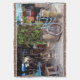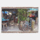 On this Throw Blanket - Casual, relaxed, riding around on bicycles, these are some of the things that make up the comfortable lifestyle pictured in this original photograph by ZoeSPEAK, of an aqua blue bicycle leaning against a post in front of an open air bar in Key West, Florida. There is a leafy green bush in a tub, under an awning which matches the colour of the bike. The dark interior of the place is filled with wooden bar stools, and aqua and cobalt blue umbrellas over the tables. An aqua blue bar in front completes the colourful photo.