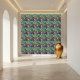 Capture the timeless grace of Chinese decorative art with this elegant tile. The design features a stylised blue bird among golden branches and delicate flowers on a rich green and red canvas. A stunning choice for wall décor, tile installations, or art lovers seeking a unique piece inspired by Eastern beauty.