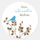 Cute personalised kitchen baking and canning stickers with a whimsical aqua blue and brown bird design.