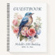 Pretty blue bird and pink flowers women's 50th birthday party guestbook personalised with the name and age of the guest of honour, and her party date. This spiral-bound notebook can be purchased with either a hard or soft cover. The back is a matching navy blue, but can be customised with your own photos and text. Contact me for assistance with your customisations or to request additional matching or coordinating Zazzle products for your party.