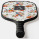 This cute pickleball paddle features a monogram and your name/text on a white background with a blue bird and pink floral patterns. Personalise it for your needs.