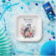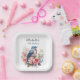 Elegant blue bird and pink watercolor flowers 75th birthday party paper plates. Personalised with the name of the guest of honour and her age. Contact me for assistance with your customisations or to request additional matching or coordinating Zazzle products for your celebration.