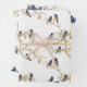Cute Bird Trees Pattern in Navy Blue, White and Gold Wrapping Paper Sheets.