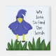 A fun design for bird lovers. A cute blue bird with a big beak and unique blue wings and feathers. Tall green grass. A great saying 'we love to feed the birds'...