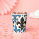 Blue Black Baroque Fleur-de-lis Pattern Design Paper Cups
