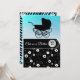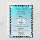 Cute as a button, blue and black baby carriage boy baby shower invitation.