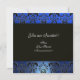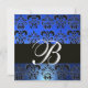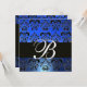 BLUE BLACK DAMASK MONOGRAM , white Invitation