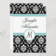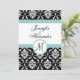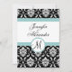 Blue Black Damask Wedding Monogram Invitation