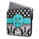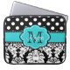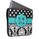 Show off your personal style in a fun way with this blue and black dots and damask personalised computer sleeve.