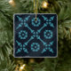 Blue Black Geometric Tile Board Game Distressed Ceramic Ornament