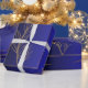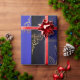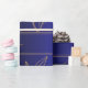 This wrapping paper showcases a modern and minimalist botanical design, featuring delicate gold leaf outlines framed within geometric borders. Set against a rich dual-tone blue and black gradient background, the intricate gold accents add a touch of sophistication and luxury. The ornamental flourishes in the corners enhance the regal feel of the design, making it perfect for formal occasions, luxury gifts, or elegant celebrations. The contrast of the bold background with the fine gold detailing creates a striking visual effect, ideal for those seeking understated elegance.