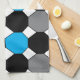 Colourful Octagon Geometric Pattern kitchen towel. Black blue grey octagon geometric pattern.