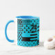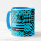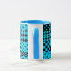 Blue and Black Mixed Patterns Patchwork Design of 16 Different Design illustration of Fleur-de-lis, crowns, hearts, Polka Dots, Greek key, irregular Abstract, Houndstooth, Trees, Harlequin, Stripes, Check, umbrella, anchor, Chevron, blob and flower floral illustration Designs.
