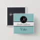 Blue Black Monogram Usher Wedding Button. Elke Clarke© Fully customisable. Personalise and change the background colour to match your wedding.