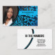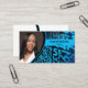 A blue and black numbers background on this design features a photo placeholder on the left with template name on the right. The back includes a coordinated design and colours with text fields for the business name and details. Replace the placeholder photo with your vertical format photograph. Fill in the template fields or edit using the design tool to select a font style, size, and colour you like. The placeholder photo is courtesy pixabay.com.