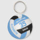 This sporty volleyball themed keychain features a realistic looking light blue, black and white volleyball upon which you can customise the player's name & jersey number plus school or club name and mascot name in a varsity letter style font - by katz_d_zynes | search ALL katzdzynes' blue & grey or blue & black volleyball team colours gifts >>>> https://www.zazzle.com/store/katz_d_zynes/products?cg=196655886495428252