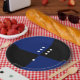 Blue/black polka dot dice pattern paper plate