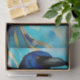Blue Black Raven on blue and gold abstract Tissue Paper