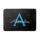 Black and Blue Simple Script Monogram Name Bath Mats. This makes the perfect graduation, birthday, wedding, bridal shower, anniversary, baby shower or bachelorette party gift for someone that loves glam luxury and chic styles.