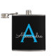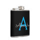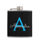 Blue Black Script Girly Monogram Name Hip Flask