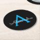 Blue Black Script Girly Monogram Name Round Paper Coaster