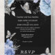 Blue black silver glam butterfly rose floral chic all in one invitation