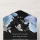 A beautiful all-in-one luxurious and glam featuring mother of pearl butterflies flitting across a black background that has two tone blue roses edged with faux silver sprigs. The outside is a delicate pastel blue colour and the lift up flap has the same black with delicate floral design. The bottom third has a tear off response card with personalised rsvp address and meal options for your guests to complete. These are ideal for a spring; summer; fall or winter wedding; for a blue and black theme party or for a luxurious and elegant themed wedding anniversary celebration.