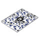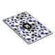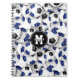 This soccer themed spiral notebook features a pattern of randomly arranged blue, black and white soccer balls in varying sizes turned every which way on a white background - player name and monogram or jersey number are customisable - by katz_d_zynes