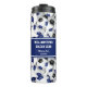 This soccer themed thermal tumbler features a bunch of varied size blue, black & white soccer balls arranged in a random, 3-dimensional-look pattern - customise the athlete's or coach's name, team name and sports season/year - by katz _d_zynes