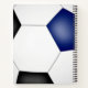 This cool soccer themed spiral notebook features the image of a simple, abstractly oversized soccer ball with blue, black and white panels on the front and back cover - athlete's name and varsity letter, monogram or jersey number are customisable - by katz_d_zynes