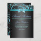 Elegant Blue/Black Swirl & Bow Sweet 16 Birthday Invitation