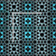Seamless geometric pattern featuring geometric shapes in black and blue shades. Texture with optical illusion effect.