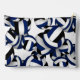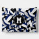 This volleyball themed zipper pouch features a random pattern of varied size blue, black & white volleyballs turned every which way on a white background - customise with the volleyball player's monogram - by katz_d_zynes