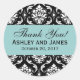 Blue, Black Wedding Damask Thank You Label