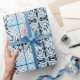 Blue Black White Curly Abstract Repeat Pattern Wrapping Paper