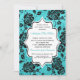 This elegant and modern distressed turquoise blue, black and white floral damask bridal shower invitation has large peony type flowers on it that have a subtle texturised look. It is fully customisable. The paper type is also customisable. If you require any other matching items, please email your request to niteowlstudio@gmail.com.