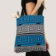 Blue Black White Greek Key Fret Pattern Design Tote Bag