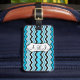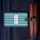 This funky monogrammed aqua blue, black, and white waves and striped pattern luggage tag is fully customisable and would give your luggage a chic and modern tag that would make it easy to spot at the airport. If you need help, or want something changed, email your request to niteowlstudio@gmail.com.