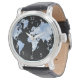 Blue Black World Map Design 75 Watch