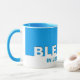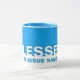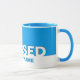 Modern Blue BLESSED In Jesus' Name Christian mug, with the word BLESSED in WHITE typography and IN JESUS' NAME in BLUE. All text is CUSTOMIZABLE, so you can create your own text and add your favourite Scripture reference. This mug would make a great gift for Christmas, Birthdays, Mother's Day, Father's Day, etc. Other colours (incl glitter versions) are available.