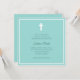 Religious blue invitation featuring an outer white border and a white cross. © Mood 4 Cute