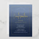 This is one of my designs and I just had to see how the new foil-stamped cards looked in person. I'm so glad I did as I am VERY happy with how this looks in person. Since the foil is stamped on the card, it has almost an embossed feel to the foil as it is raised slightly above the background. If you want this is another color combination, please contact me. It printed out exactly as I had wanted it to. All the lettering is readable but the thin parts of the font I used are a little harder to read so I may update the invitation to use a different/heavier-weight font so that it stands out more. The @ symbol in the email address on the template text is barely noticeable using the sample font so a different font might be better if you plan on adding the RSVP info.