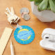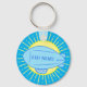 Cute cartoon style blue blimp drawing. Bright yellow sun in the background. Custom keychains. Edit name on the balloon to customise it. Gift idea.