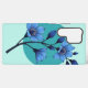 "Blue Blossom Elegance" phone case design features a stunning, stylised floral arrangement with vibrant deep blue flowers. Intricate linework beautifully outlines the petals, with darker centres adding depth and contrast. The delicate branch stretches diagonally, showcasing several unopened buds, set against a soothing pale teal-mint green background. A soft teal-green circle enhances the floral elements, creating a balance of modern simplicity and elegance. This design is perfect for those who love nature-inspired, graphic art with a touch of sophistication.
