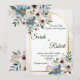 Fresh, elegant, and beautifully balanced — this floral wedding invitation features soft dusty blue and blush blooms, delicate greenery, and a refined arched frame.